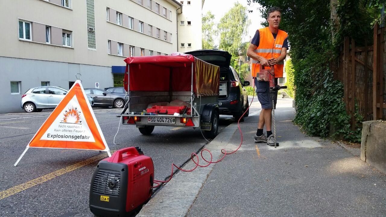 Vorortung Das Gasleitungsnetz wird anhand von Planunterlagen durch abschreiten der Hauptleitungen und Hauszuleitungen mittels Gasdetektor mit Teppichsonde auf allfällige Leckstellen überprüft. Dazu erstellen wir einen ausführlichen Bericht inkl. Vorortungsliste mit Angaben der Gaskonzentrationen.
