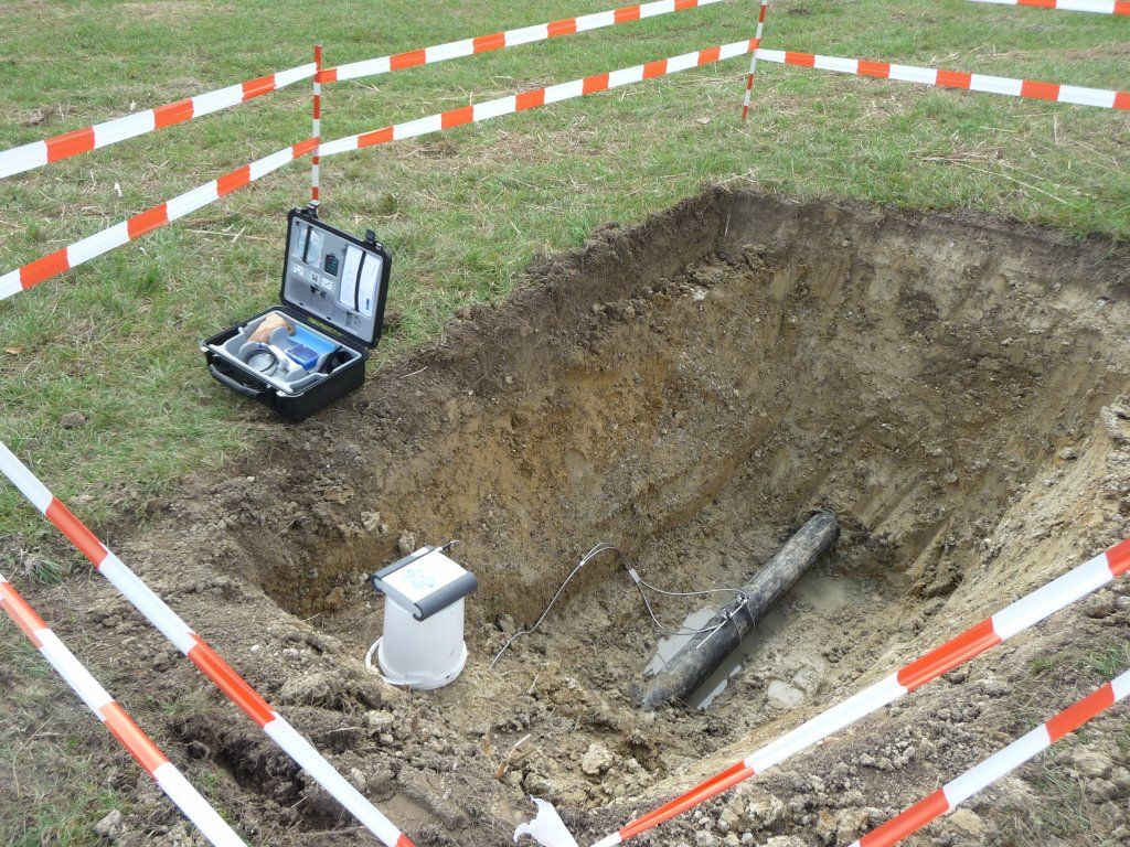 - Lecküberprüfung an zugänglichen Wasserleitungen in Schächten, Rohrkellern oder im Graben