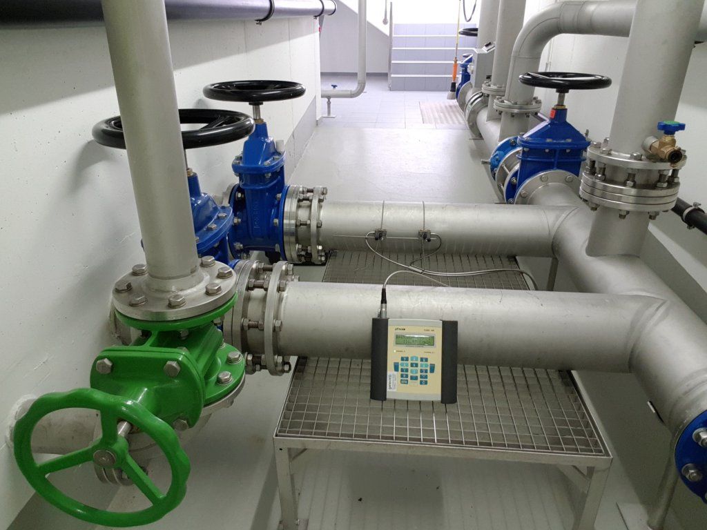 Der Durchfluss in einer Wasserleitung kann ohne Eingriff und ohne Arbeiten an der Leitung gemessen und aufgezeichnet werden.