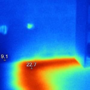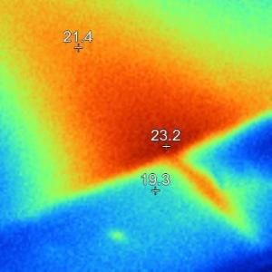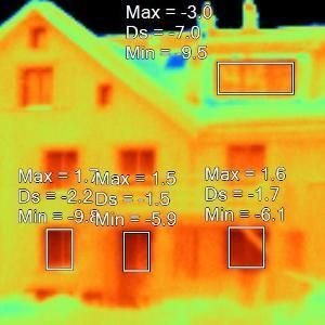 Bei der Gebäudethermografie werden aussagekräftige Aufnahmen von thermischen Auffälligkeiten eines Gebäudes gemacht. Auffälligkeiten sollten wenn möglich auch mit den physikalischen Grundlagen von innen her kontrolliert werden.